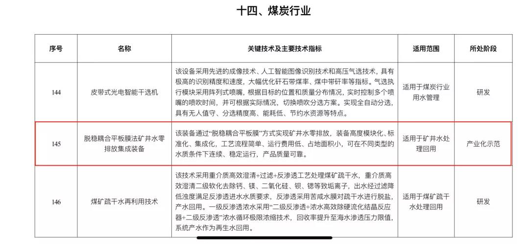 “脫穩耦合平板膜”技術入選《國家鼓勵的工業節水工藝、技術和裝備目錄(2021年)》