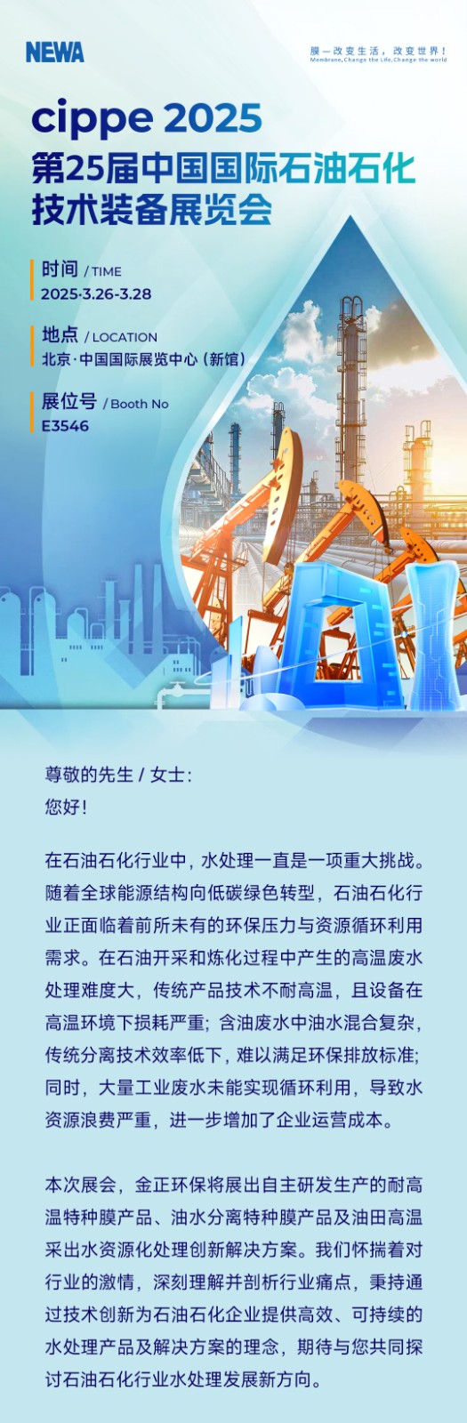 邀請(qǐng)函丨煙臺(tái)金正環(huán)保邀您相聚cippe2025北京石油展